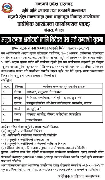 » अगुवा कृषक छनोटको लागि निवेदन पेस गर्ने सम्बन्धी सूचना ।
